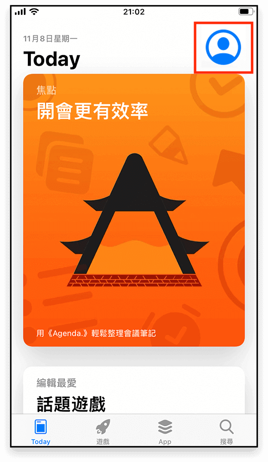打开 App Store ,点击 <右上角图标>;